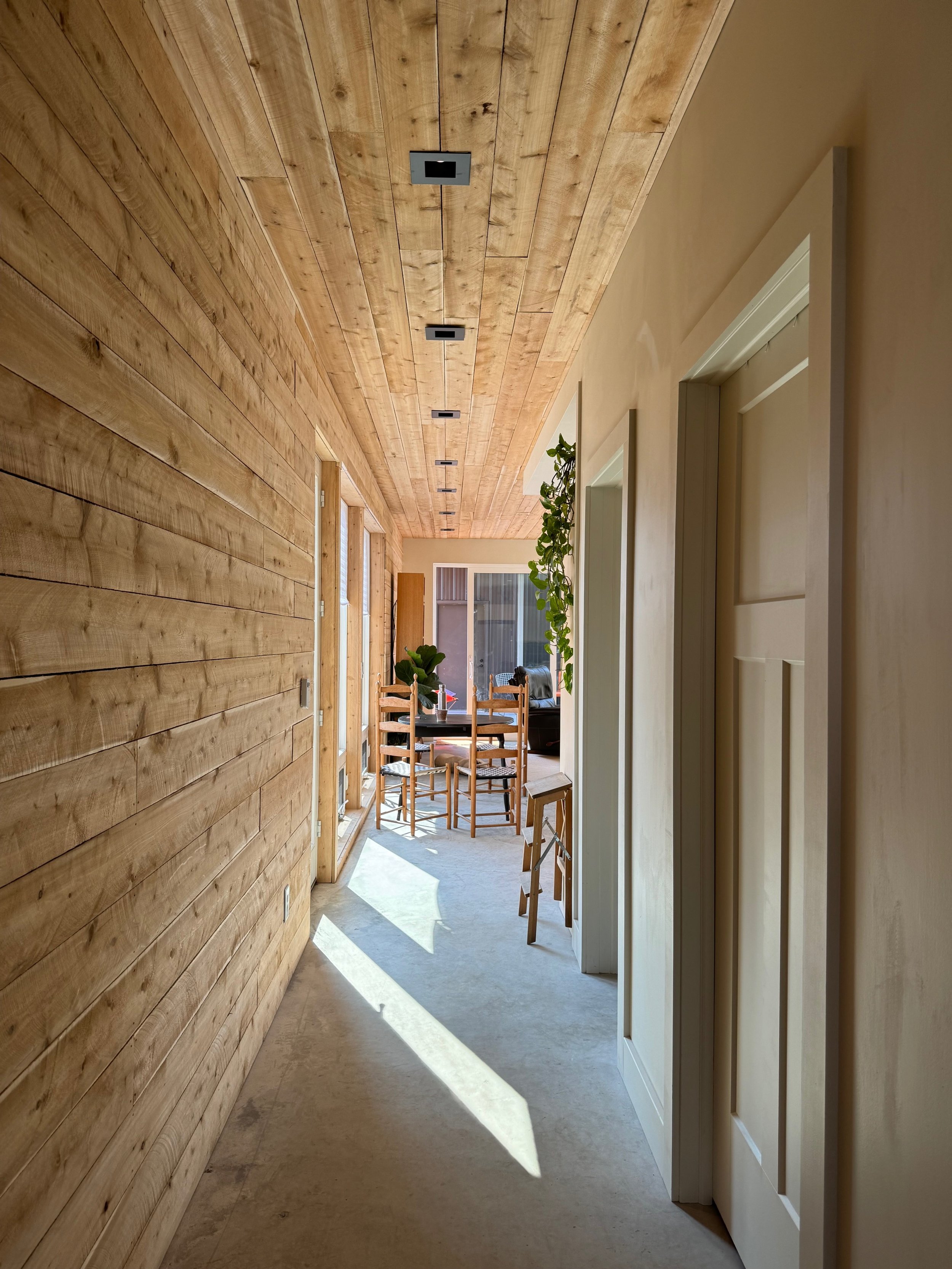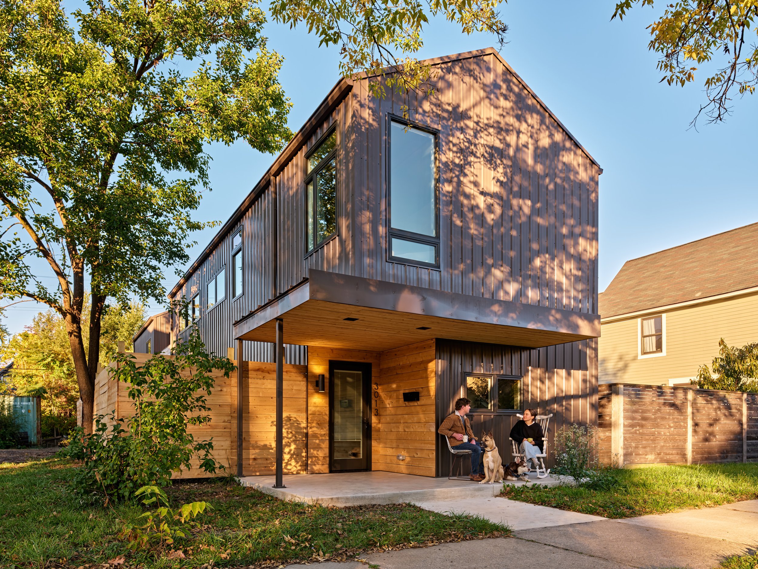 Nestled within a compact 30-foot wide infill lot in Detroit, MI, this innovative residential design maximizes a narrow, elongated footprint. The 1,600 square-foot main residence features a thoughtfully planned layout with three bedrooms and two bathrooms. A striking 24-foot tall cathedral ceiling in the living area and a thoughtfully designed patio space seamlessly merges indoor and outdoor living areas creating an airy and inviting atmosphere.