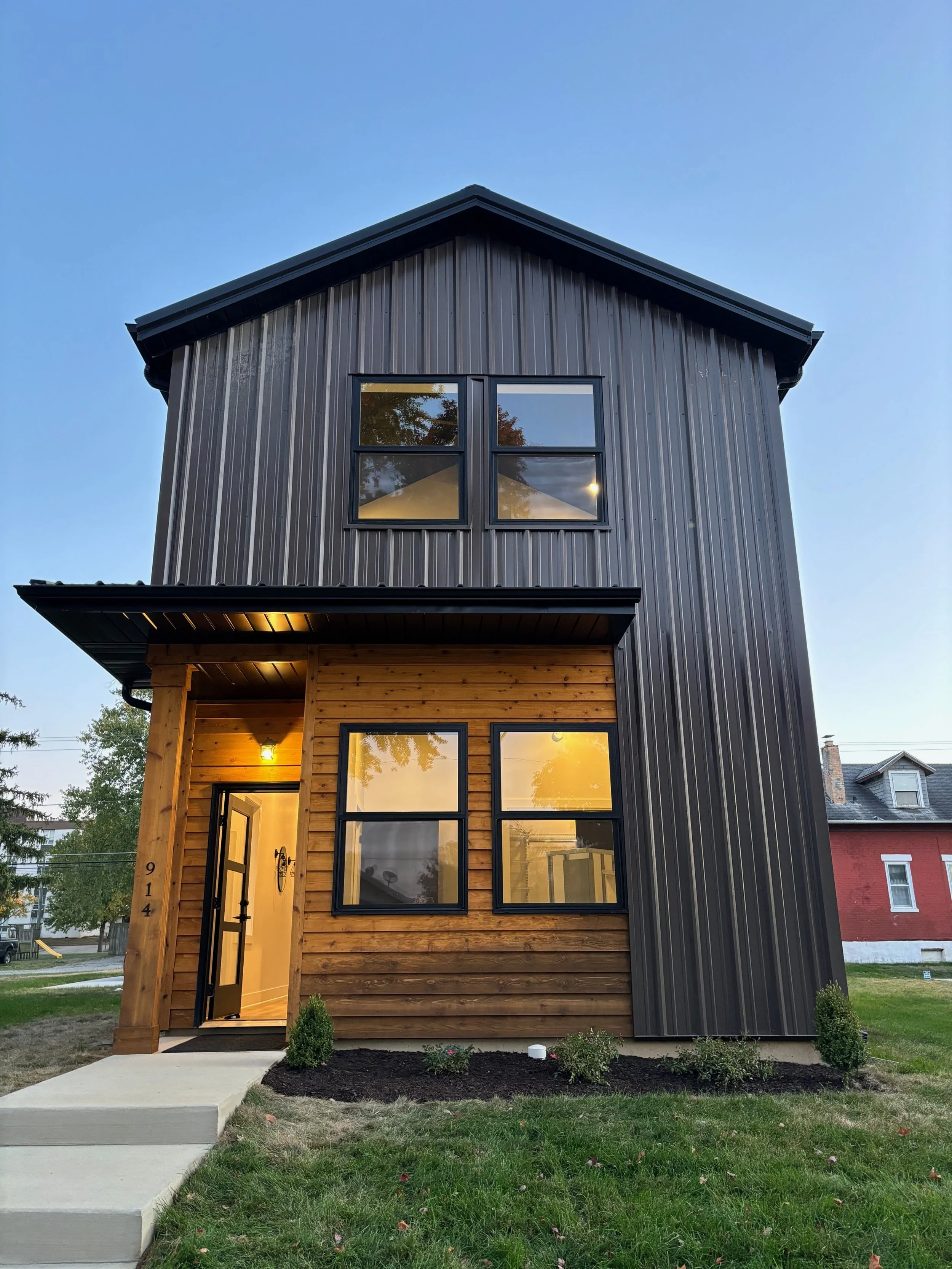 Exterior Materials: 100% recyclable high-performance envelope with R-60 roof, R-45 walls that is designed to eliminate thermal breaks and air infiltration, complemented by high-performance double-pane, low-E, argon filled windows, 40-year metal envelope with recycled content, and natural cedar